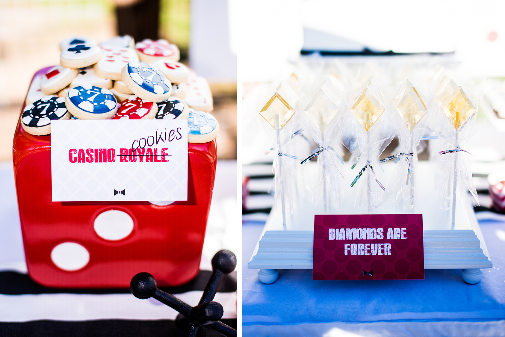 The spotlight was on the desserts at this party! We creatively converted the most popular 007 movies into naming the desserts, and styling them after the spy party theme. “A View To A Kill” became “A View To A Cupcake”, and “Thunderball” became “Cakeball”, while “Casino Royale” became “Casino Cookies”. The kids had a good laugh over these clever remakes!