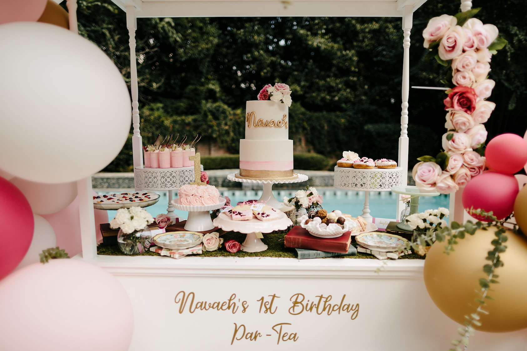 A tea party is perfect for a first birthday, a baby shower or even a bridal shower! For Navaeh’s first birthday party, I worked with her mom to host a delicate and charming little gathering in the family’s backyard. Even though it turned out a hot and humid afternoon, the guests enjoyed all the sweet details and lovely little finger foods to sample!
