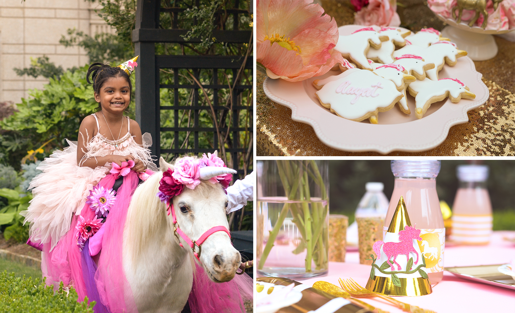 When planning kids parties, I really focus on the entertainment element first. While kids appreciate the special little touches of decor elements, what they really remember is the FUN factor! For this party, we also hired a couple of “unicorn princesses” to play games and read stories to the girls. They did some nail art and face painting too, which was a huge hit!