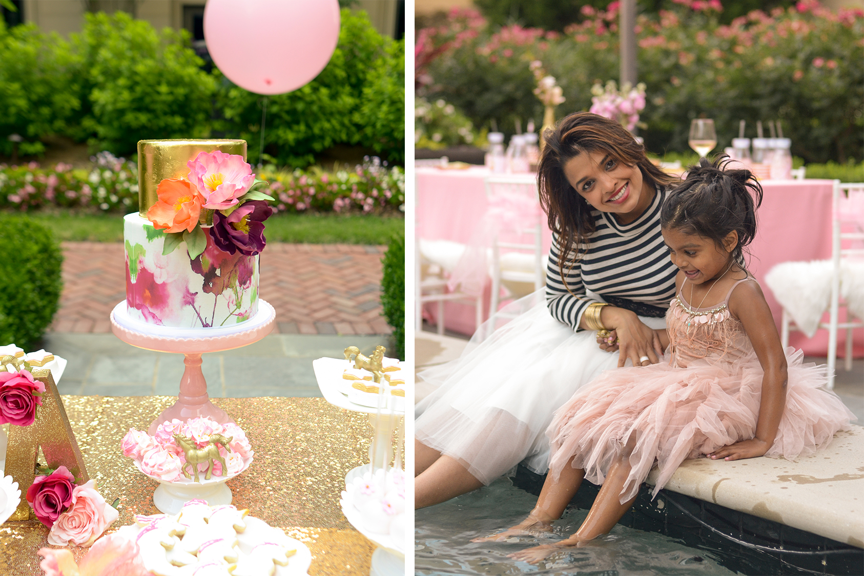 A unicorn party filled with giant pink balloons, lovely flowers, sparkle and glitter is every little girl’s dream come true! Add to that delicious treats, a floral watercolor cake and several rides on a real unicorn (shh!), and she will never forget her special day.
